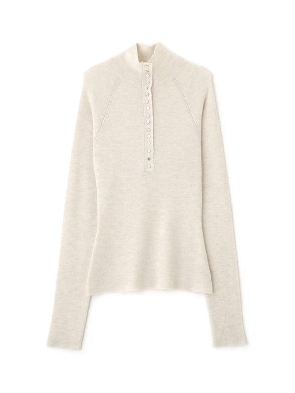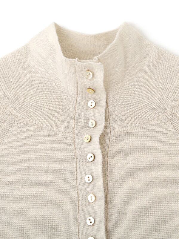 ボタン側を前にすればヘンリーネック風のニュアンスが生まれ、抜け感のあるスタイルが楽しめます。